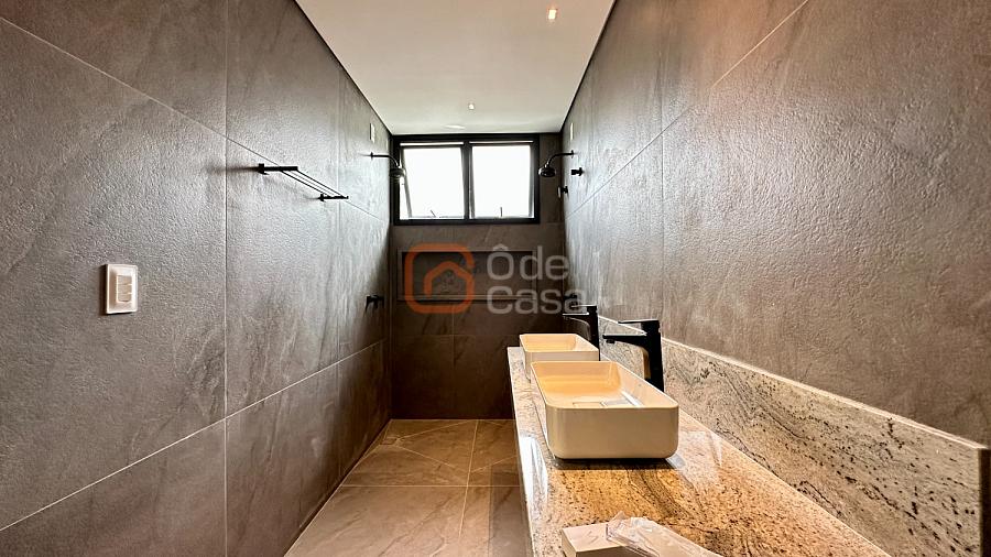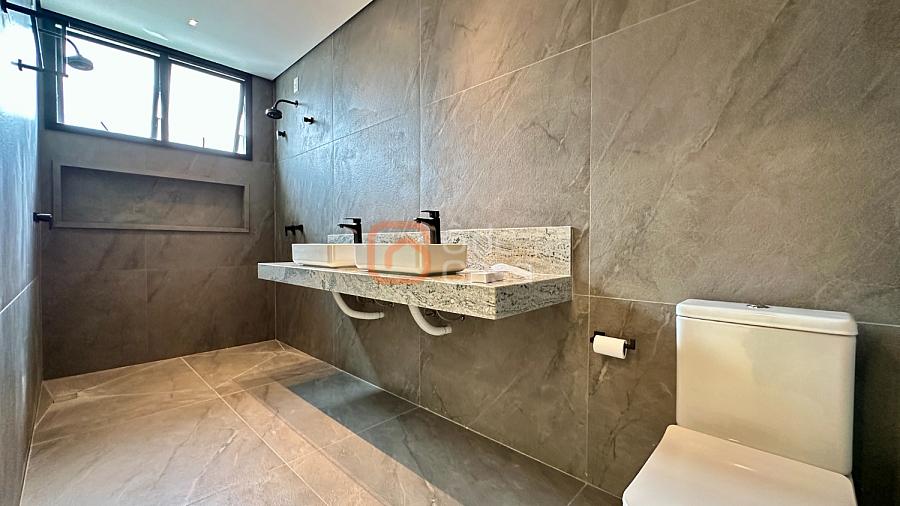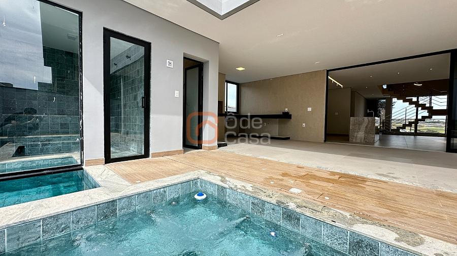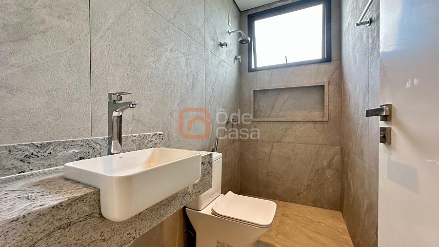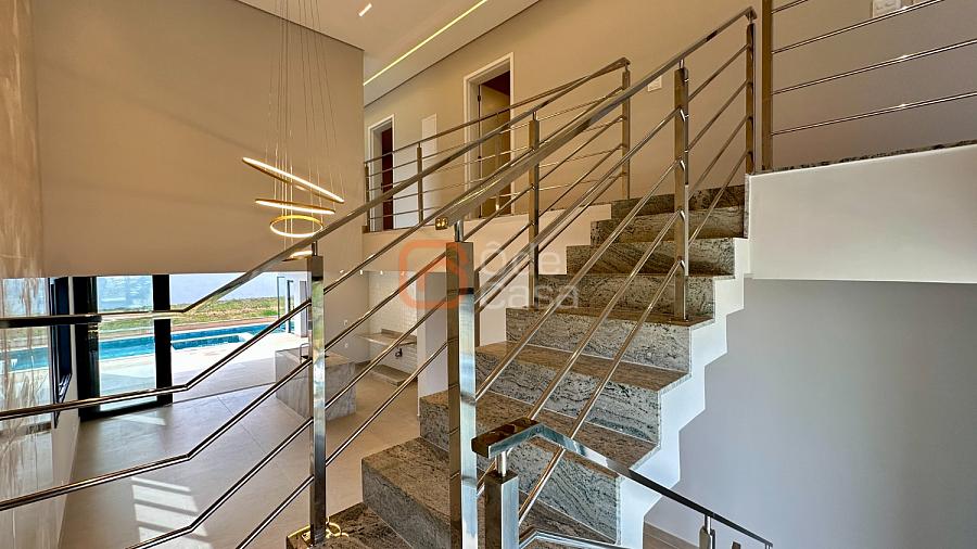 A casa já possui aquecimento solar em pleno funcionamento, preparação completa para ar-condicionado e automação em todos os ambientes, além de um projeto luminotécnico moderno e minimalista. Os acabamentos são de alto padrão, com bancadas em granitos nobres, porcelanatos de primeira linha, ferragens e louças premium.