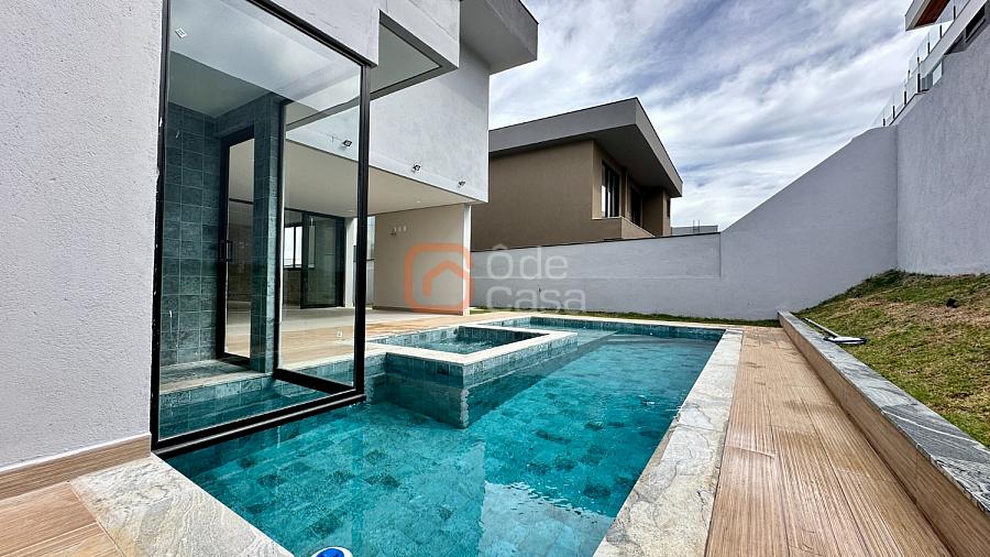 Conta com sala de estar com pé direito duplo para dois ambientes, cozinha americana com bancada em ilha e um espaço gourmet perfeito para momentos inesquecíveis. Na área externa, destaque para a piscina aquecida com iluminação, hidromassagem, sauna a gás e uma charmosa área gramada.