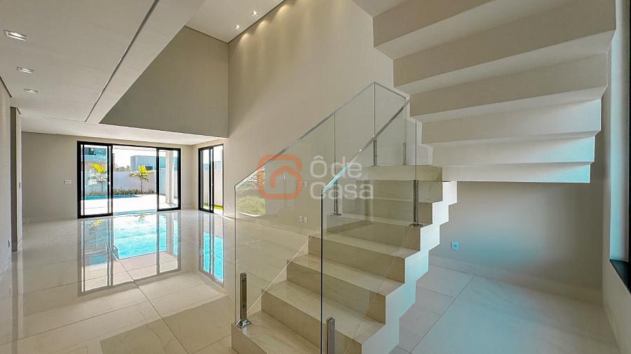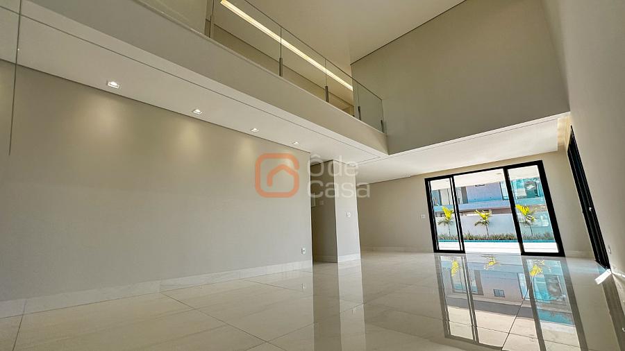 1° Pavimento: Living principal com pé direito duplo integrado com cozinha com bancada em quartzo e 1 suíte.