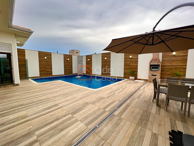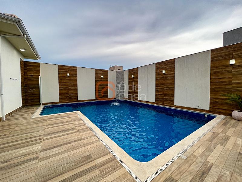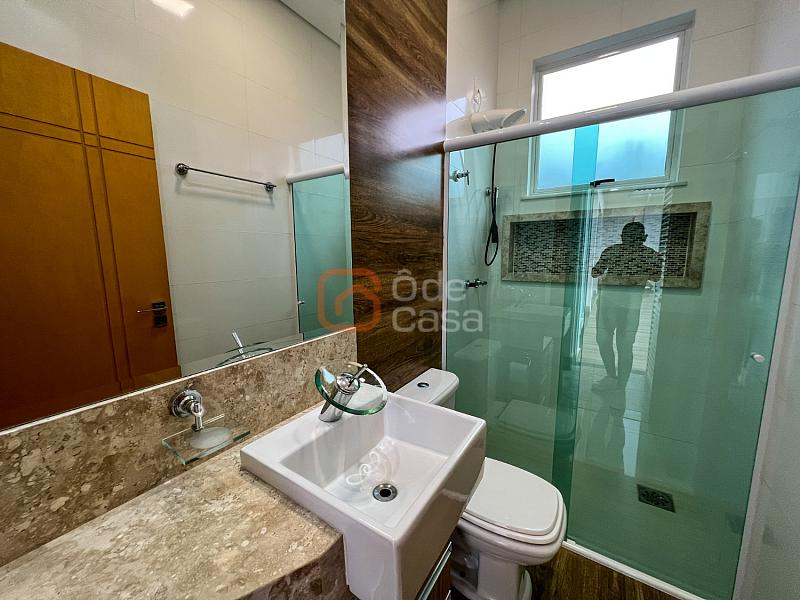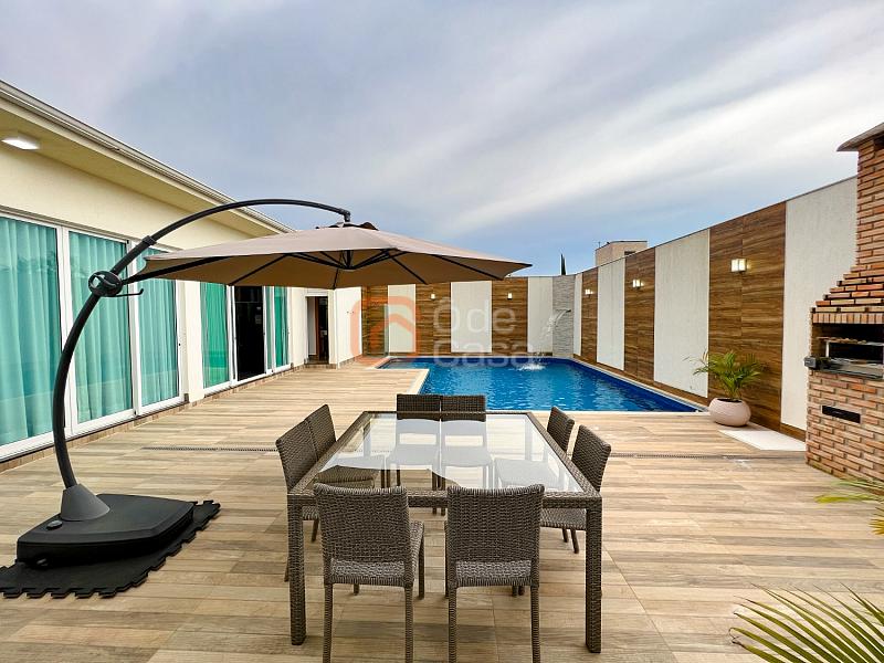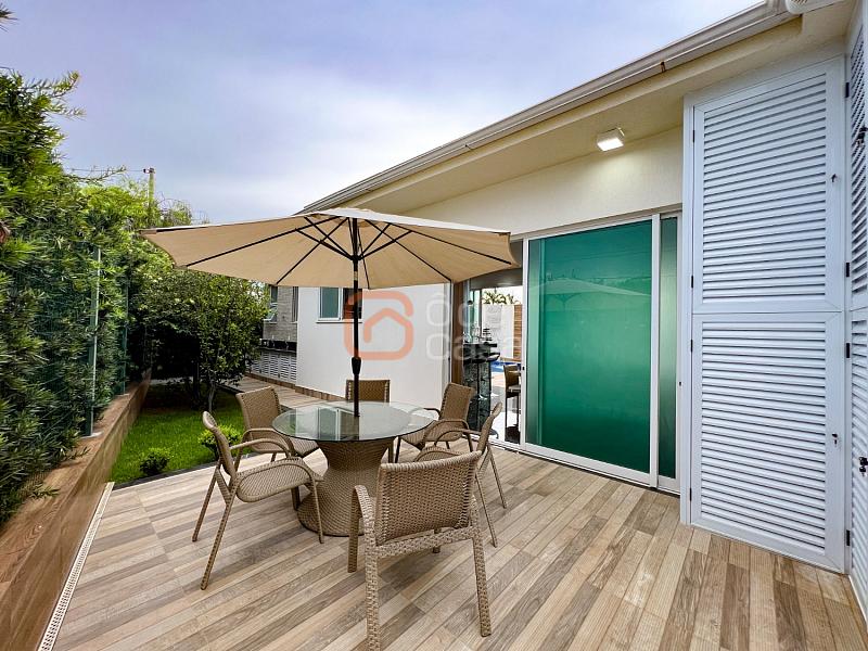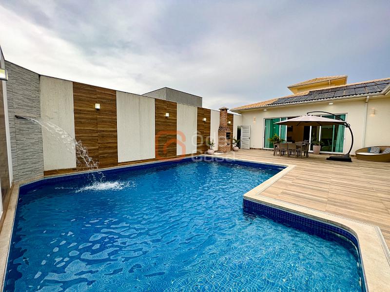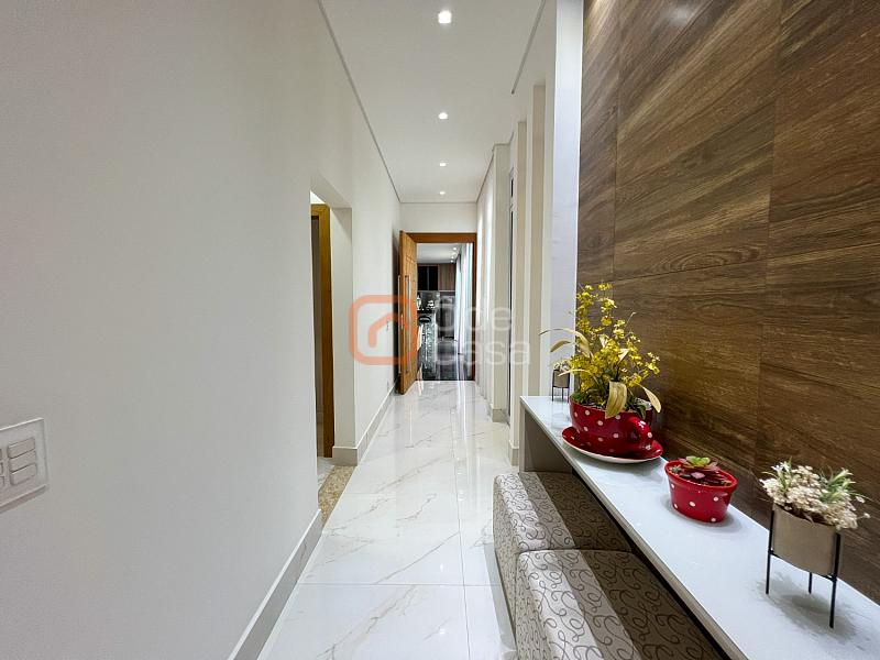 Casa linear com excelente acabamento, aquecimento solar, ar-condicionado Inverter em todos os quartos/sala e copa. Painéis e armários planejados.