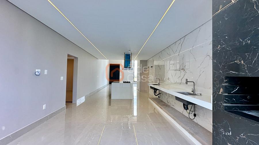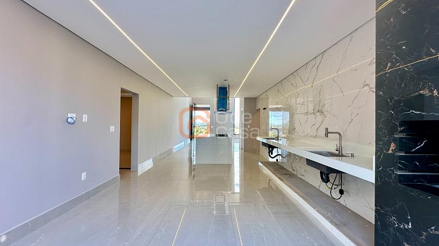 Ampla sala para 3 ambientes com pé direito duplo, integrada com cozinha com ilha e espaço gourmet com churrasqueira, lavabo, 4 quartos, sendo 2 suítes e 2 semi-suítes. Espaço externo conta com amplo quintal com piscina aquecida com cascata, hidromassagem e iluminação.