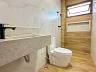 1° Pavimento: sala para 2 ambientes integrada com cozinha, área de serviço, 1 quarto.