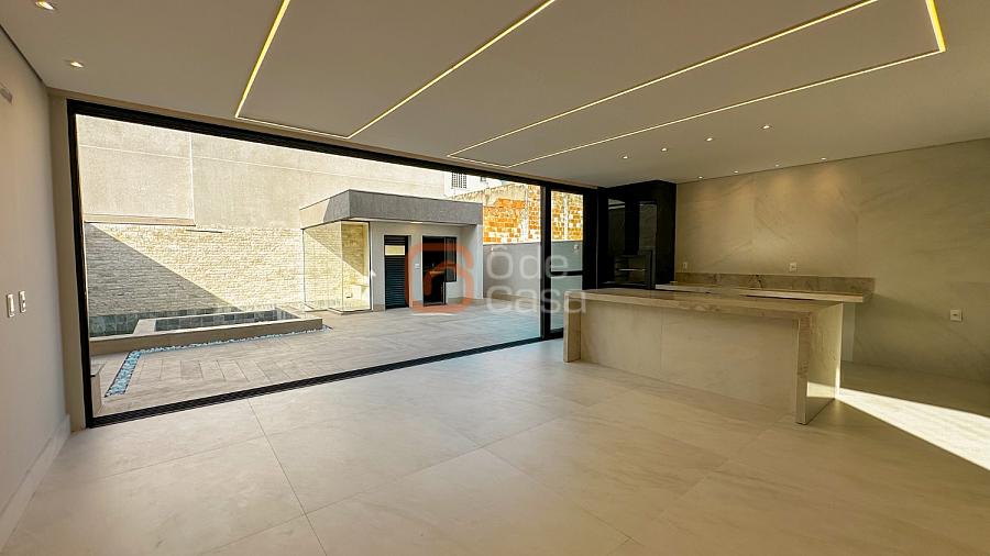 1° Pavimento: Living todo integrado com sala para dois ambientes, cozinha e área gourmet, 1 quarto com banheiro (pode ser transformado em suite se precisa). Pé direito duplo com acabamentos alto padrão e iluminação embutida e em led.