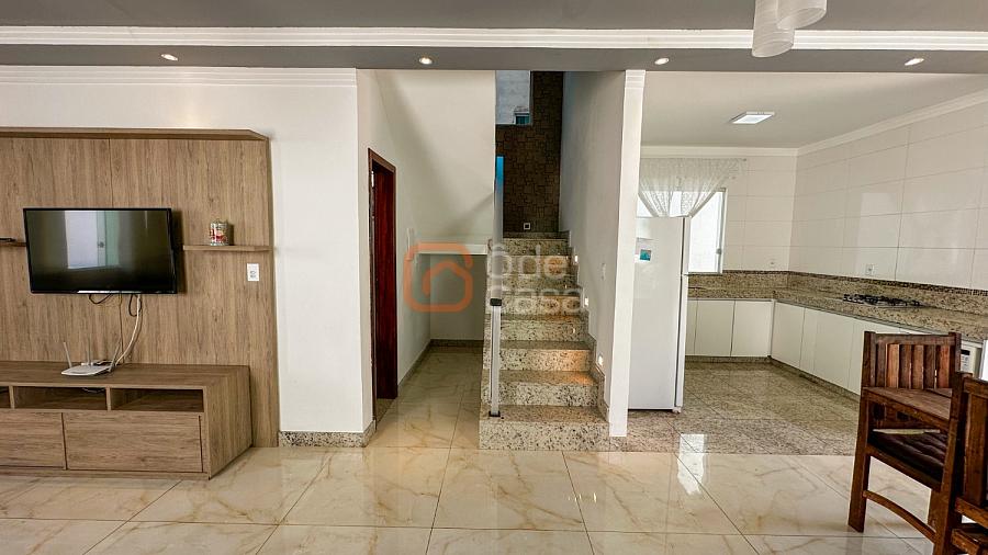 1° Pavimento: Ampla sala para 2 ambientes, cozinha com armários, área de serviço e banheiro social;