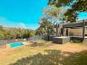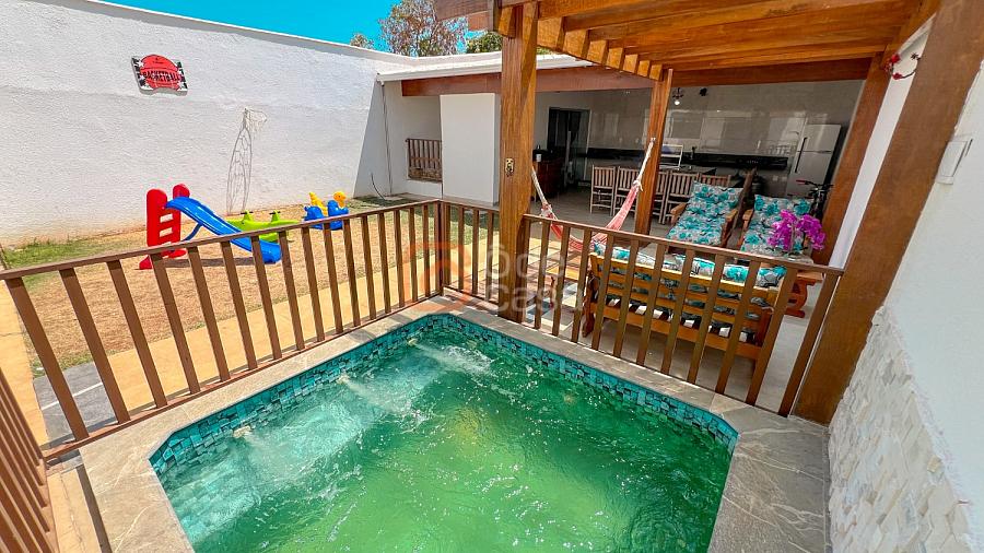Área externa: Área gourmet completa com piscina com hidromassagem; lavabo e escritório