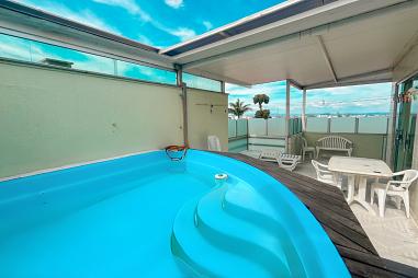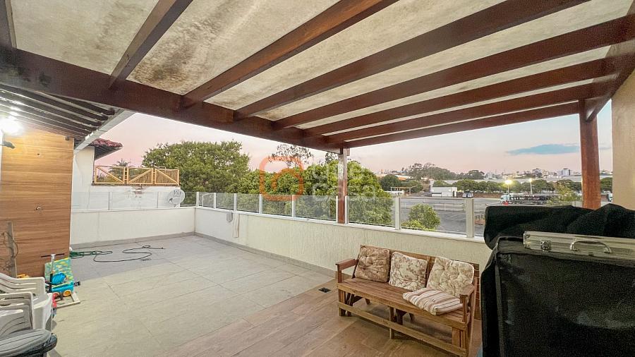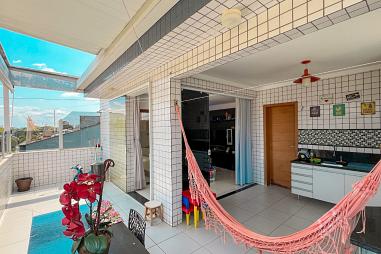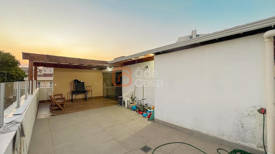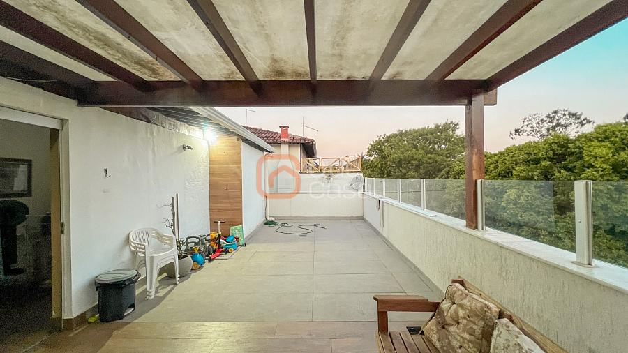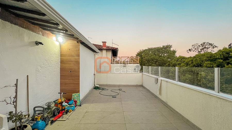 Terraço descoberto com aproximadamente 45m², vista definitiva e sol da manhã.