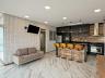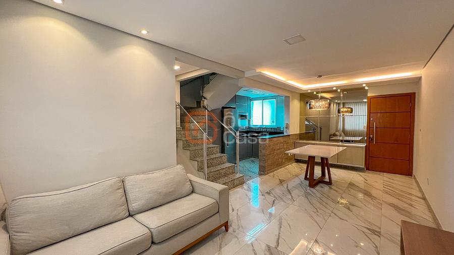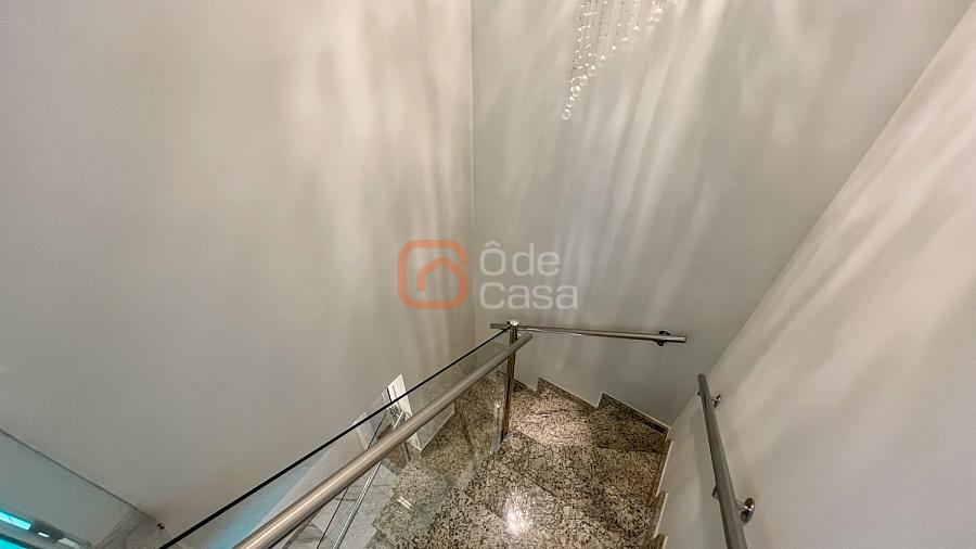 1° pavimento: Ampla sala para dois ambientes com painel de TV, lustre e mesa de jantar, cozinha americana com armários planejados, cooktop, coifa e geladeira, 3 quartos com armários, sendo 1 suíte.