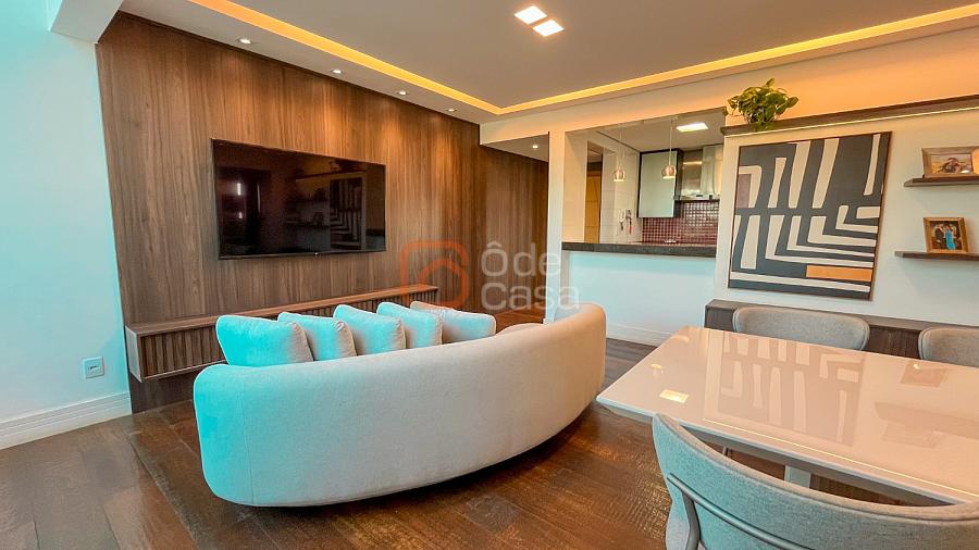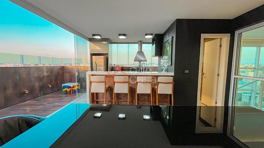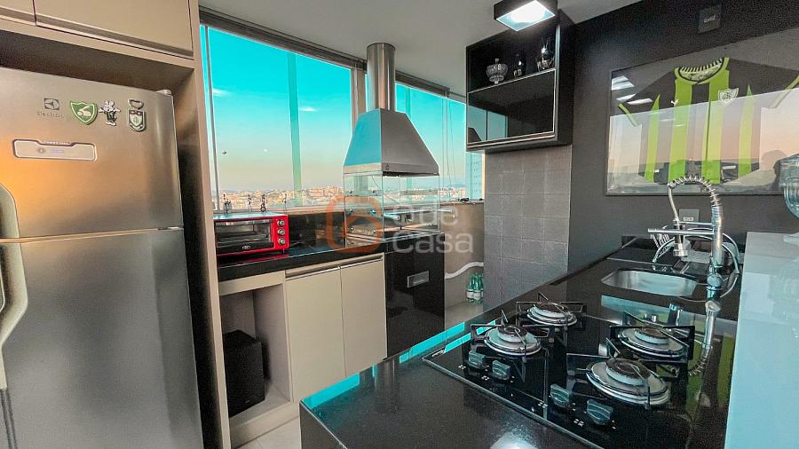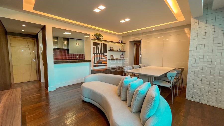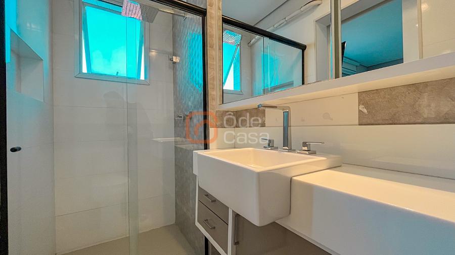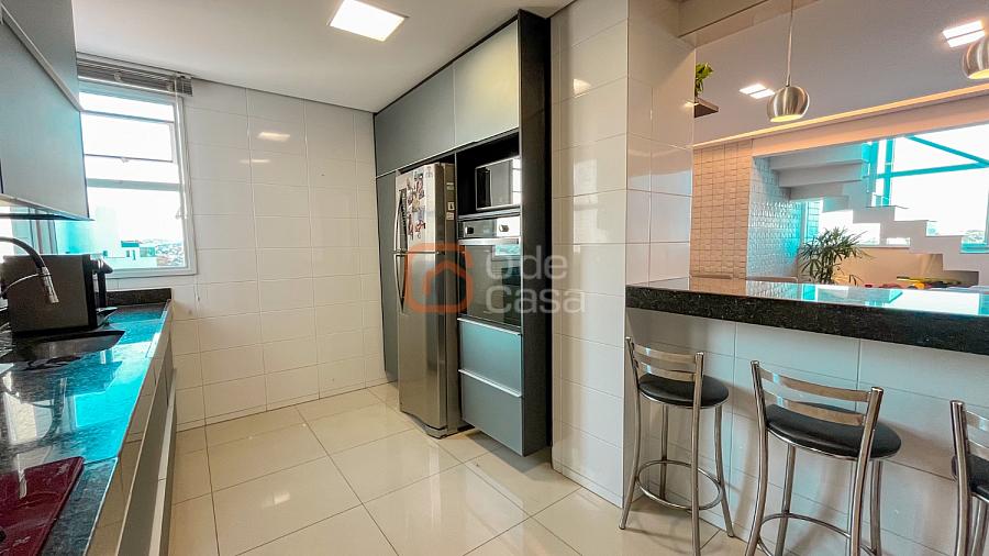 1 PAV : Ampla sala com pé direito duplo, cozinha rica em marcenaria, 3 quartos sendo 2 suítes