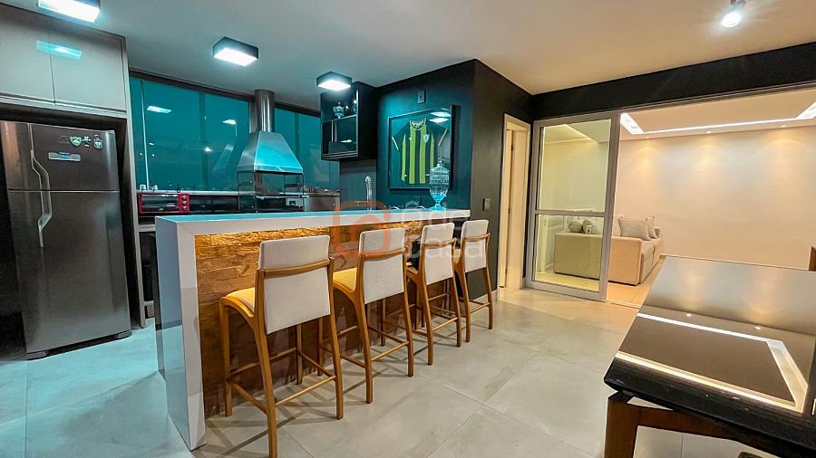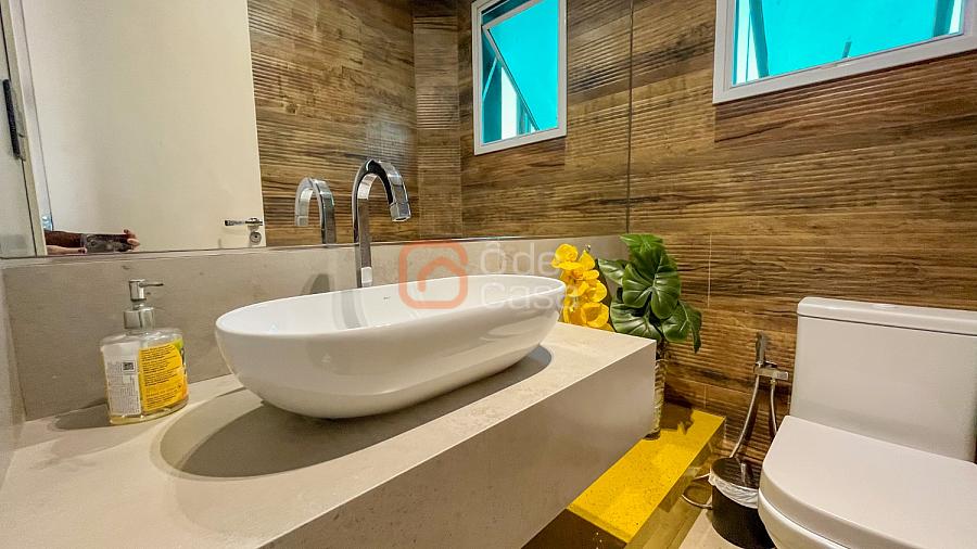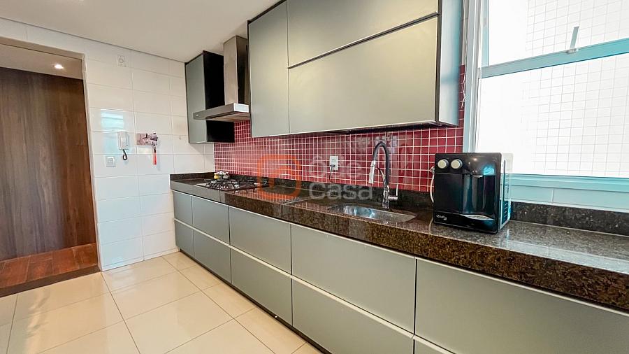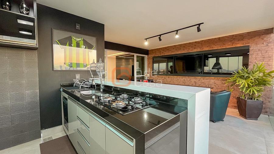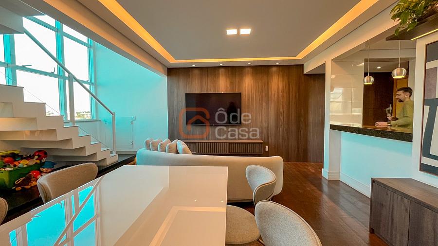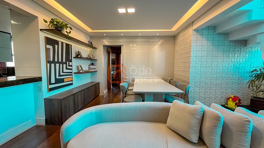 1 PAV : Ampla sala com pé direito duplo, cozinha rica em marcenaria, 3 quartos sendo 2 suítes
