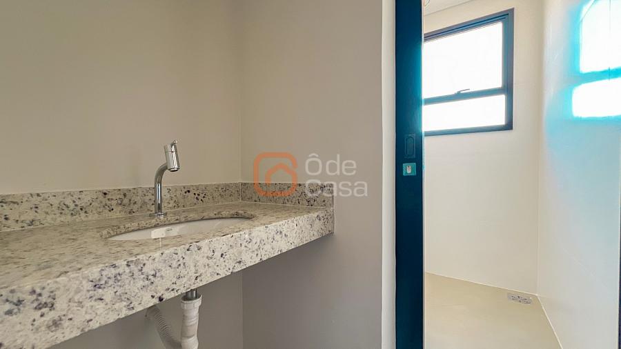 1° pavimento: Sala e cozinha totalmente integrados, parede de vidro, trazendo muita sofisticação ao ambiente, além de uma bela vista já no 1 andar do imóvel. Lavabo, 3 quartos sendo 1 suíte e 2 semi-suites.
