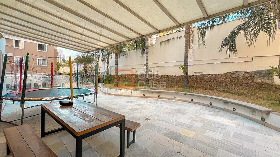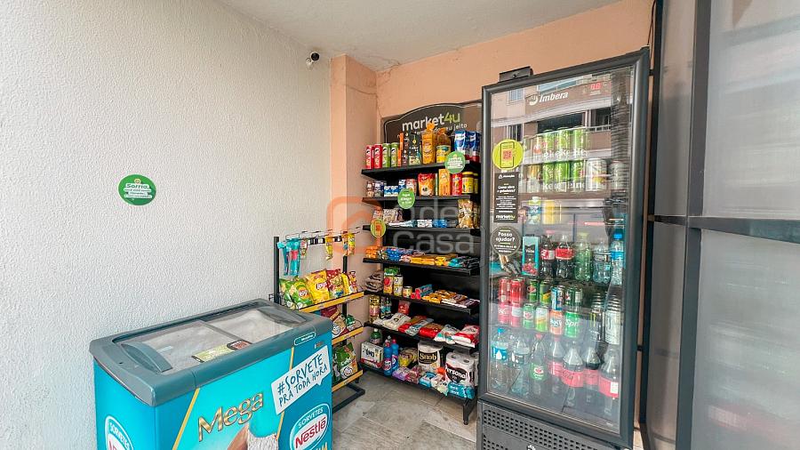 Prédio com elevador, portaria 24h, piscina, ducha, mercadinho, salão de festa, playground, quadra, academia e bicicletário.