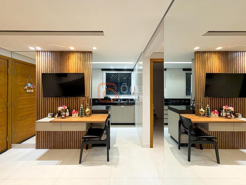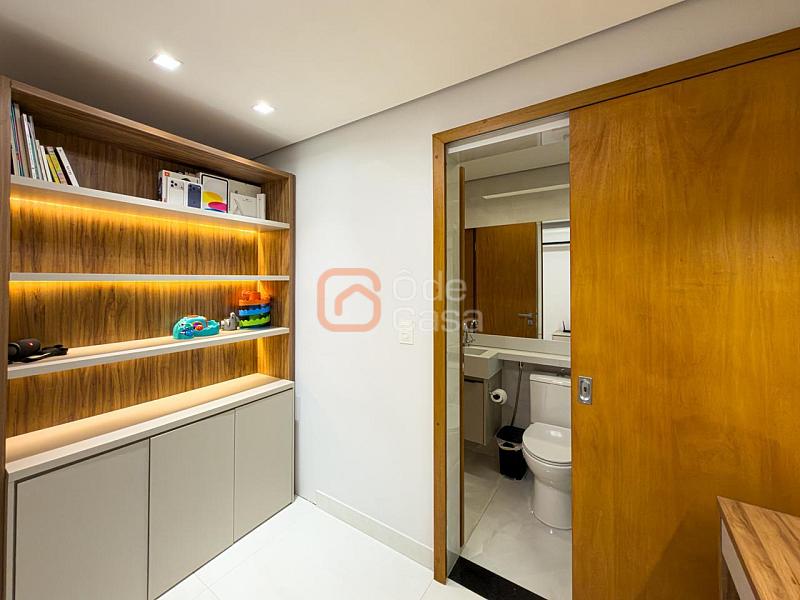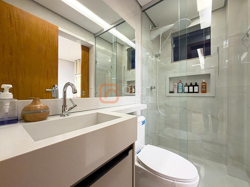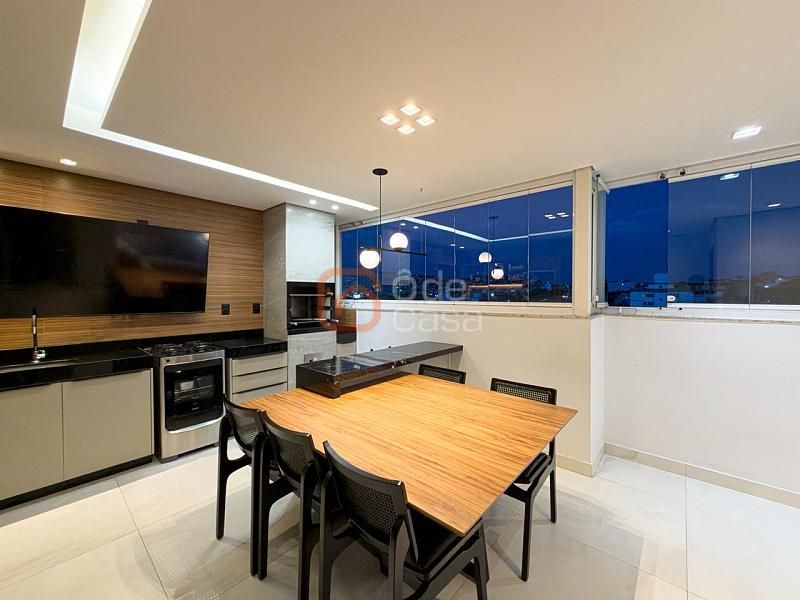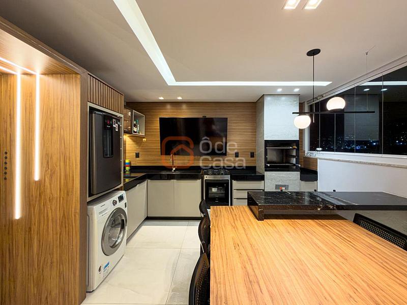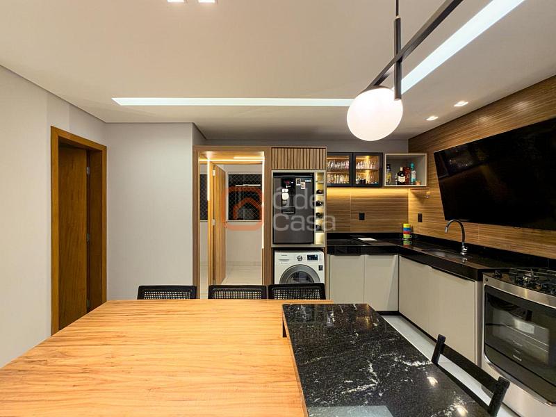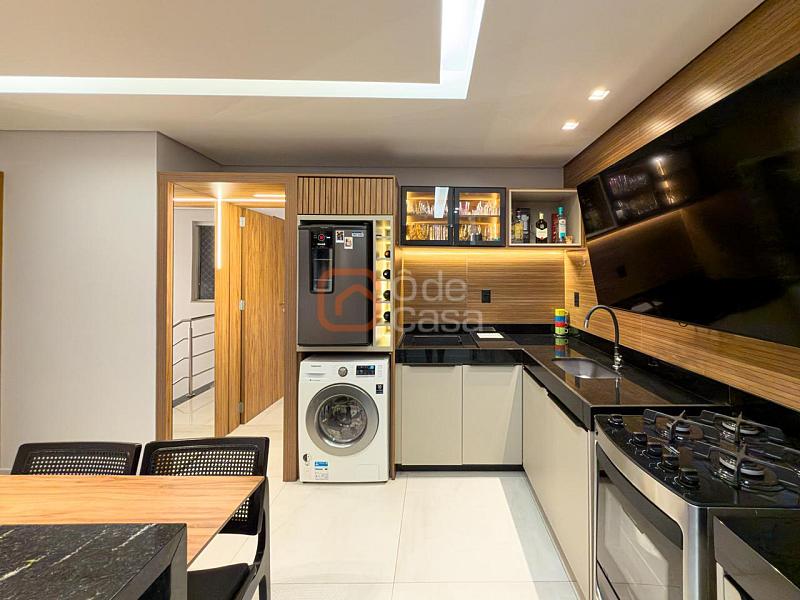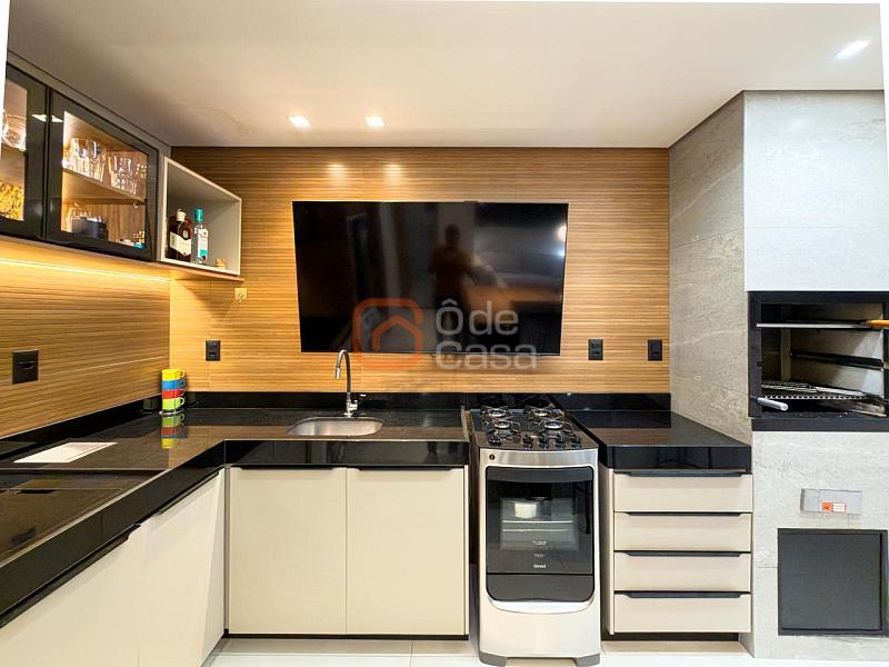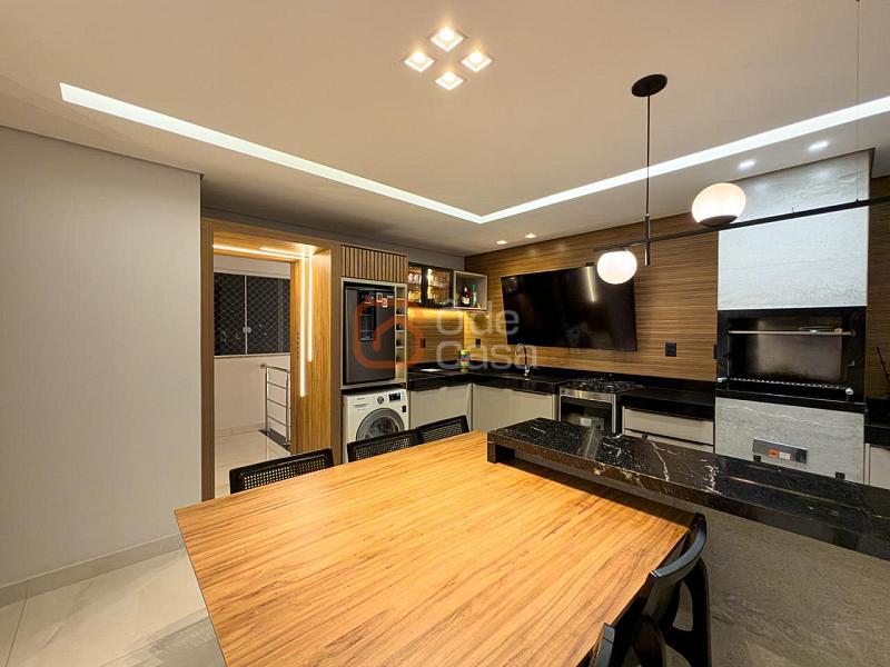 ▫️ 2° PAVIMENTO: 1 semi-suíte, espaço gourmet completo com churrasqueira a carvão, bancadas em granito e mesa planejada para 6 lugares.