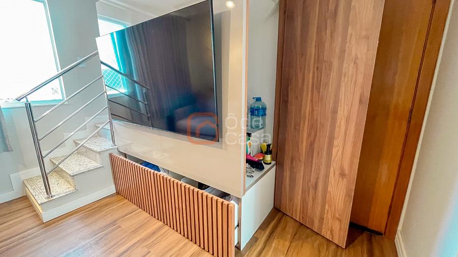 1° pavimento: Ampla sala de TV com planejados, cozinha com armários, cooktop e forno, 2 quartos, sendo 1 suíte com closet, e banheiro social.