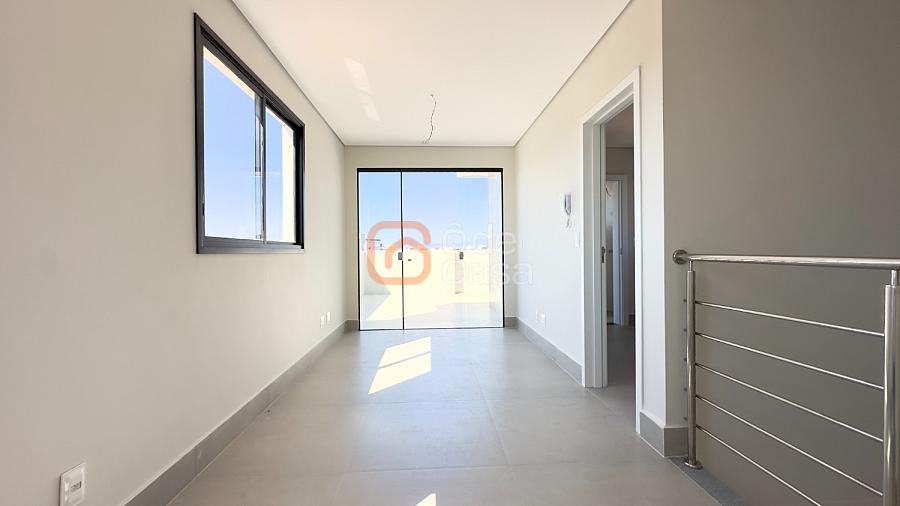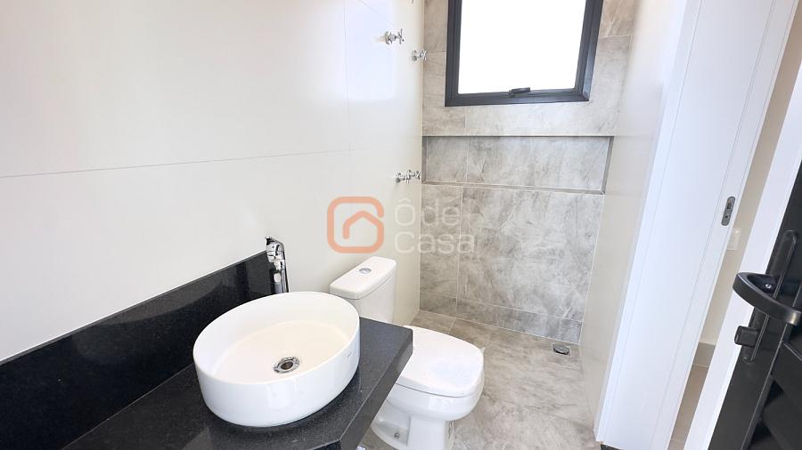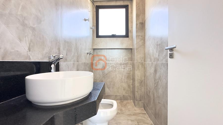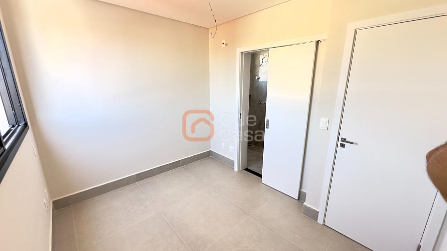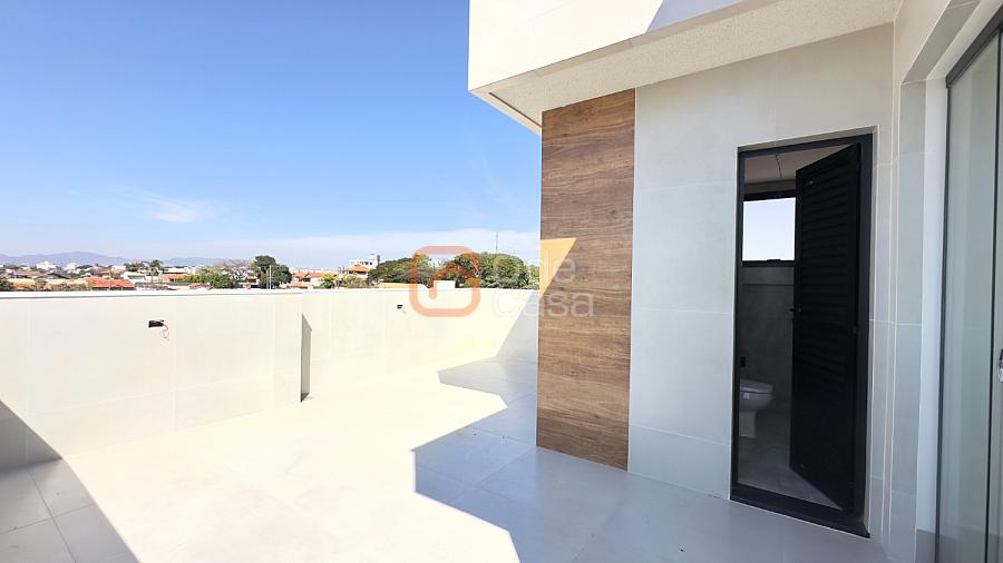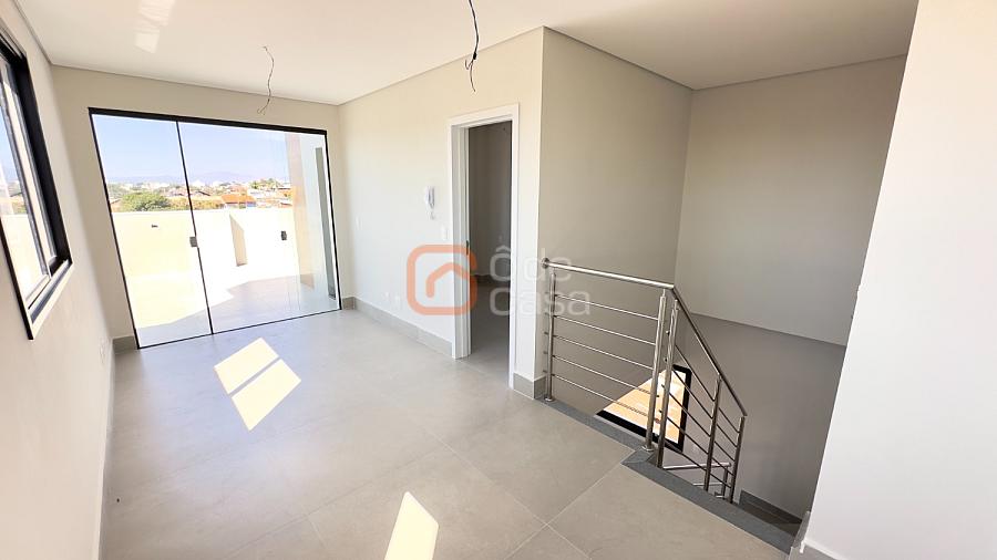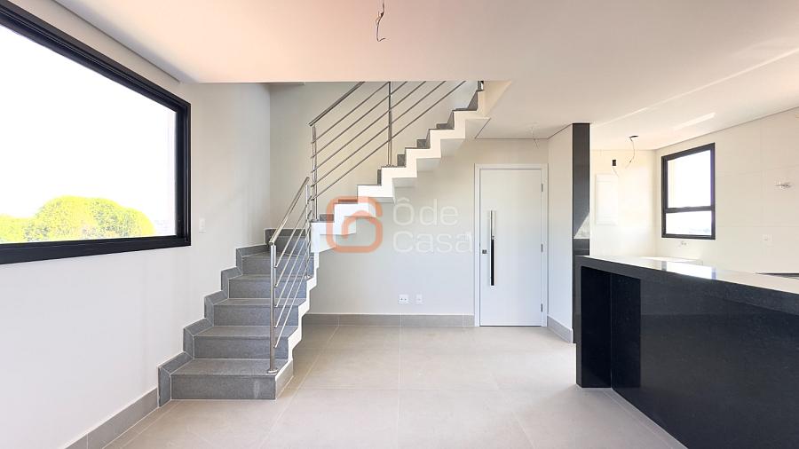 O imóvel conta com 150m² de área construída, distribuídos em dois pavimentos. No primeiro, sala de estar, cozinha americana e três quartos, sendo uma suíte. No segundo, sala íntima, mais um quarto com suíte e terraço com área gourmet e vista definitiva.