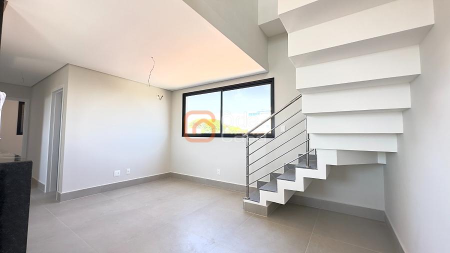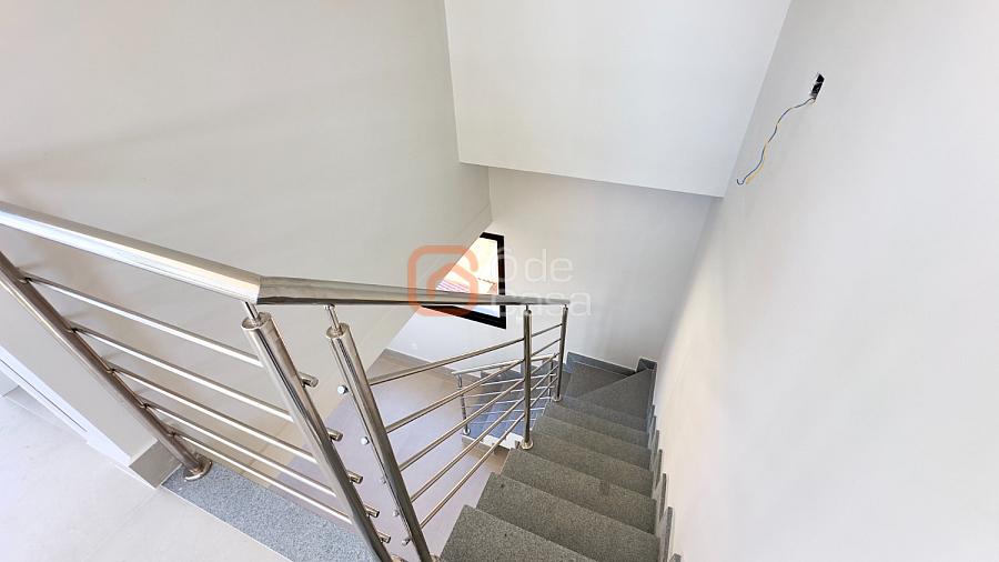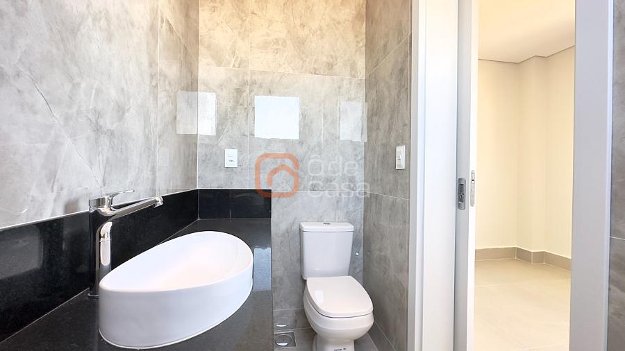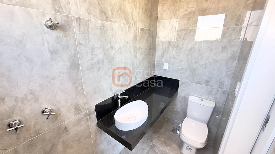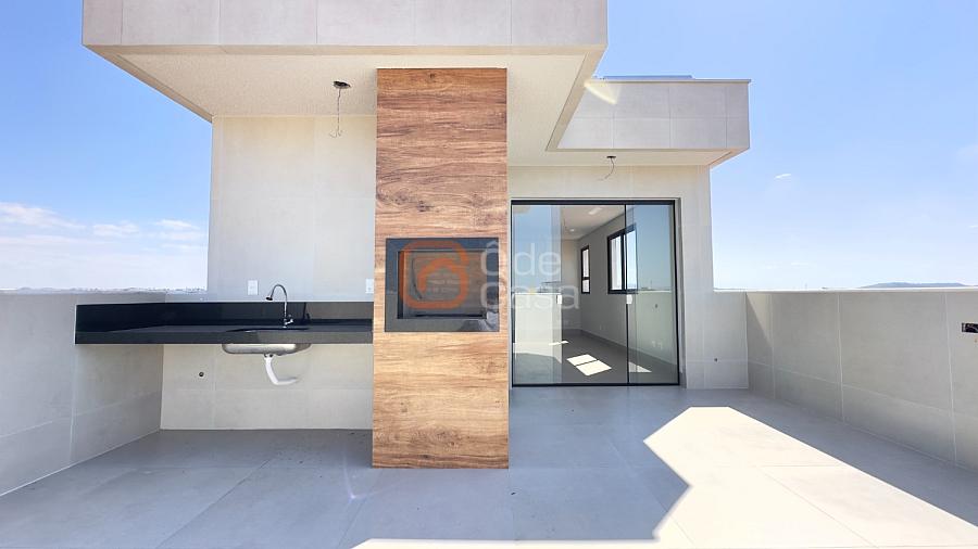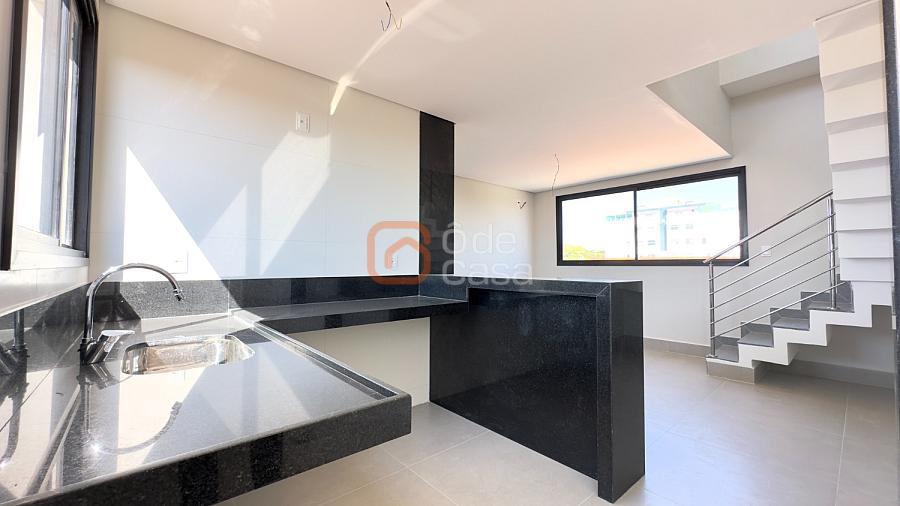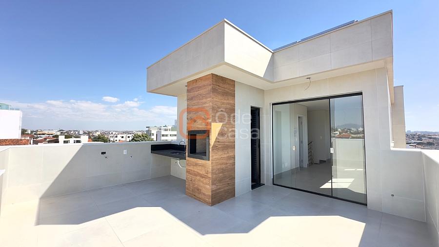O imóvel conta com 150m² de área construída, distribuídos em dois pavimentos. No primeiro, sala de estar, cozinha americana e três quartos, sendo uma suíte. No segundo, sala íntima, mais um quarto com suíte e terraço com área gourmet e vista definitiva.