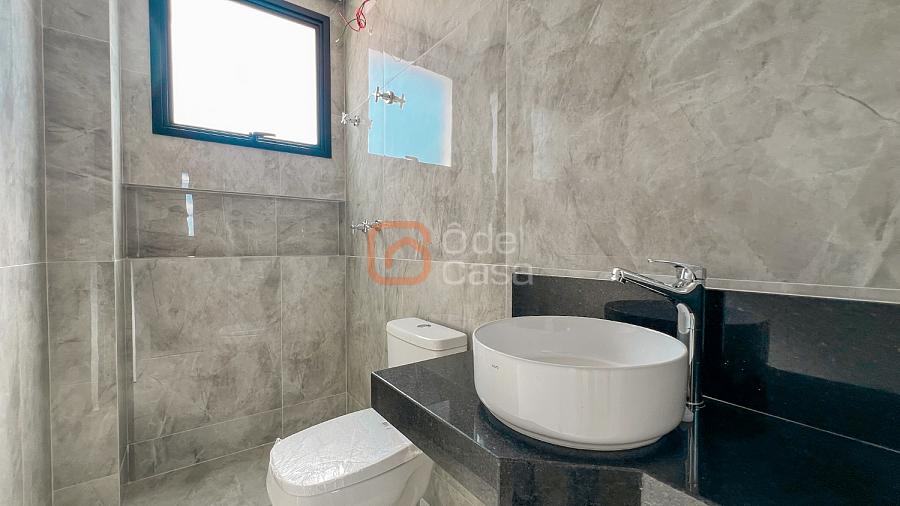1° Pavimento: Sala para dois ambientes, 3 quartos, sendo 01 suíte, banheiro da suíte com bancada em granito, cuba de apoio e nicho na área de banho, banheiro social com bancada em granito, cuba de apoio e nicho na área de banho, cozinha americana com bancada em granito e cuba em inox, área de serviço, com possibilidade de integração ao pavimento superior.