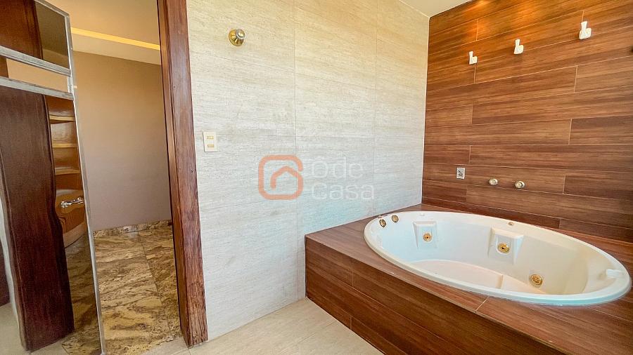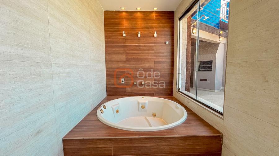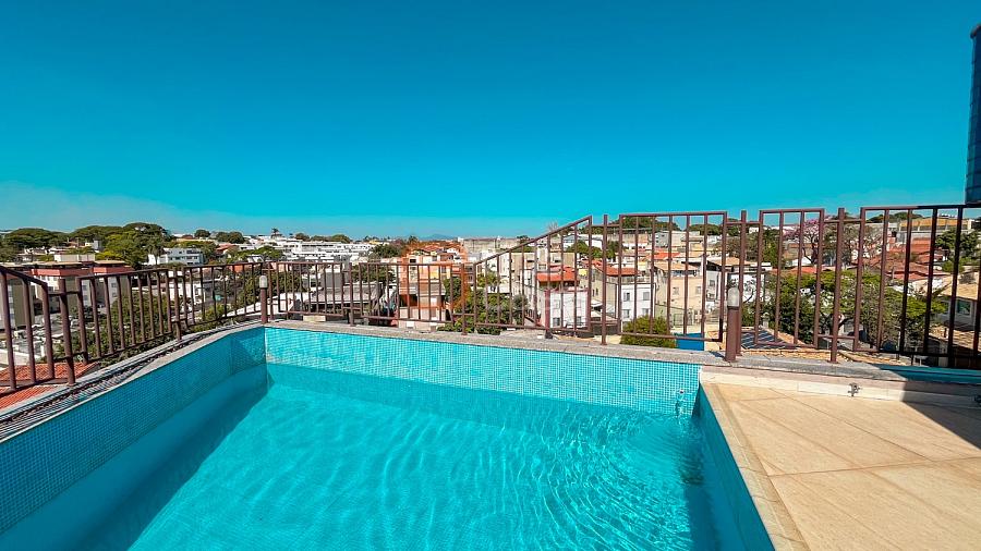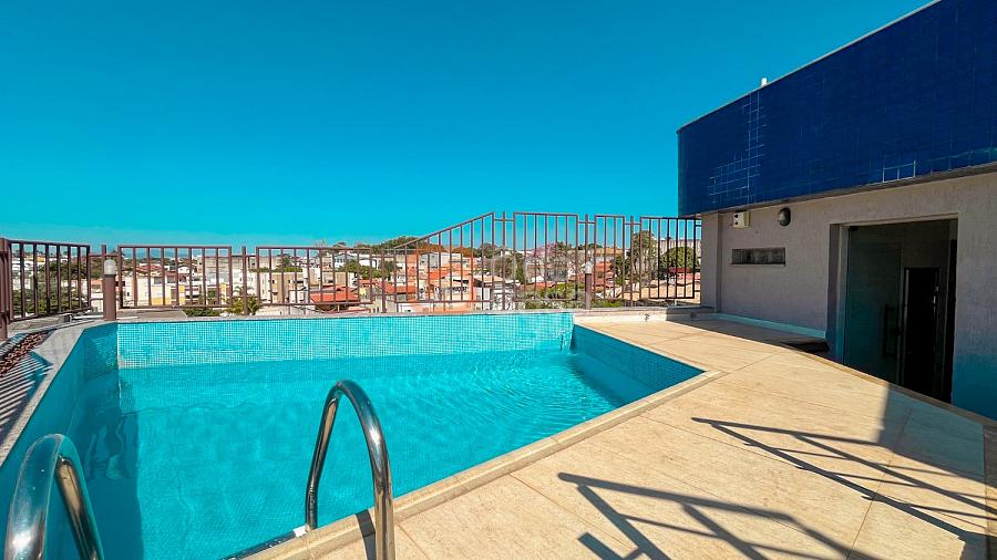 2° Pavimento: Sala ampla conjugada com 1 quarto (reversível), lazer completo com piscina, banheira de hidromassagem de 4 lugares, sauna, ducha e espaço gourmet com churrasqueira e armários, além de lavabo.