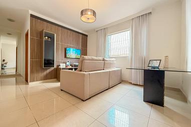 1° Pavimento: Sala para 2 ambientes, cozinha, área de serviço conjugada com a cozinha, 2 quartos, sendo 1 suíte com varanda e banheiro social.