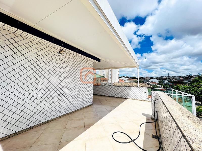 2° Pavimento: 1 quarto, banheiro social, terraço descoberto com vista ampla, parte coberta, área de serviço e lavabo.