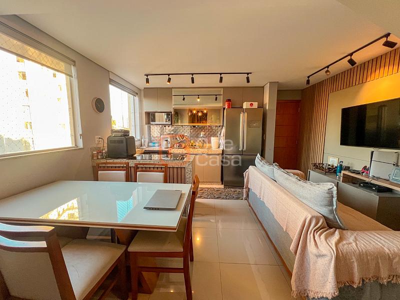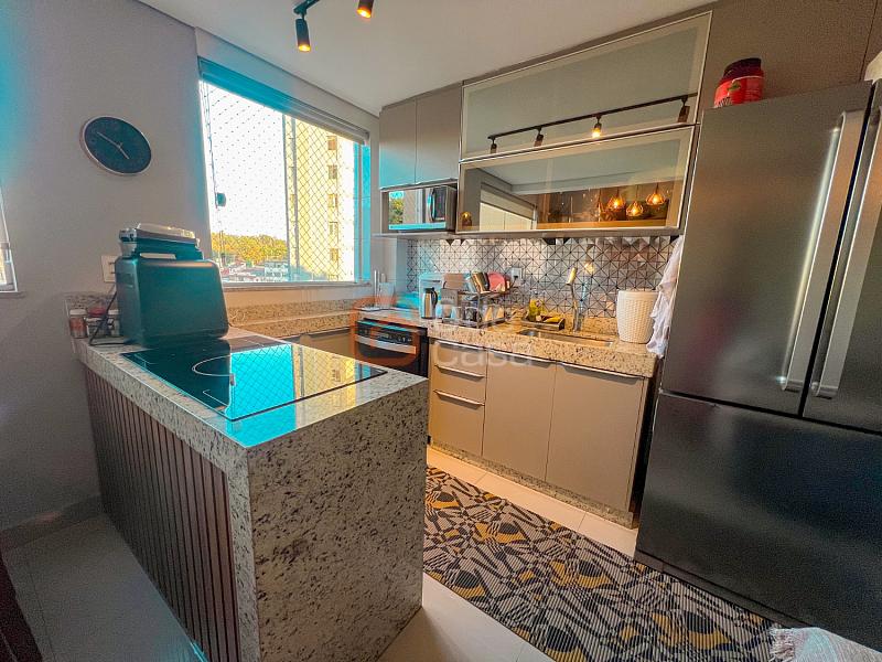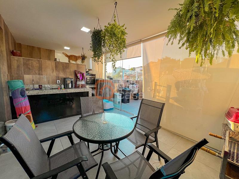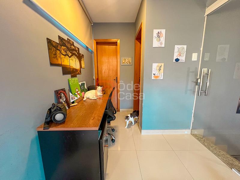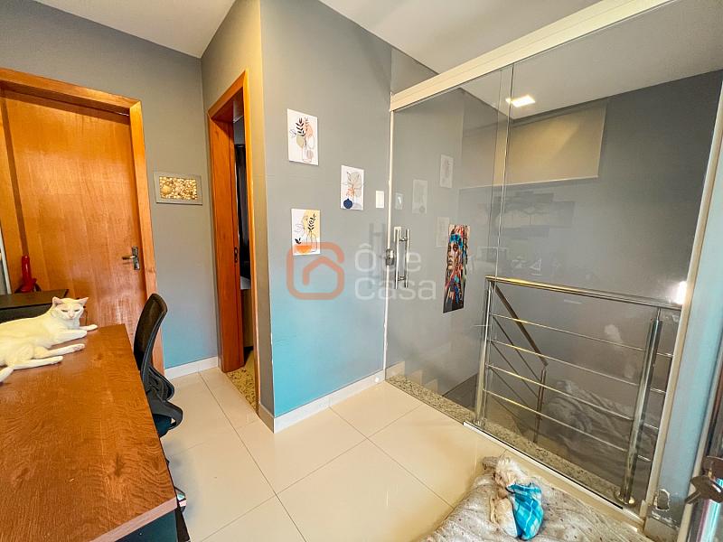 1° pavimento - 3 quartos com armários planejados, sendo 1 suíte com ar-condicionado. Cozinha moderna com conceito aberto, rico em planejados, fogão de indução, iluminação por todo ambiente e sala com painel.