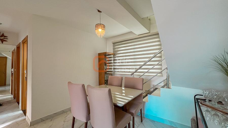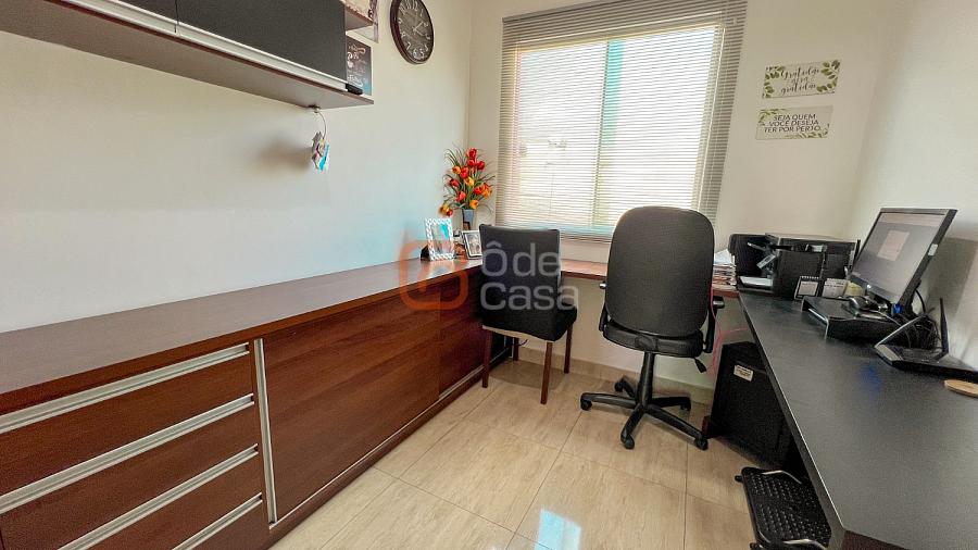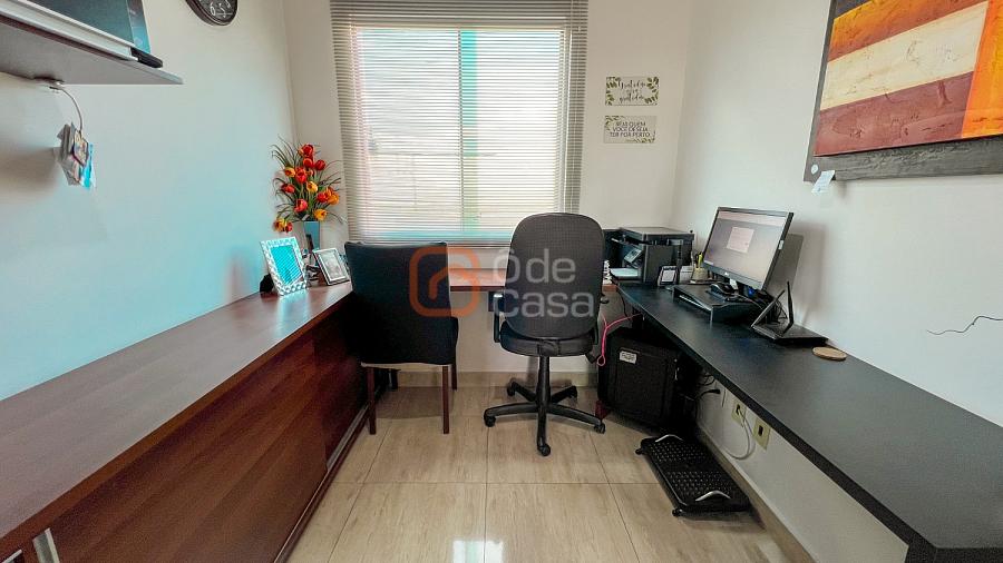 1° Pavimento: sala para 2 ambientes com piso em porcelanato marmorizado, cozinha com armários planejados e bancadas. 3 quartos, sendo 1 suíte, sendo que 1 dos quartos funciona com escritório 'Home Office' e banheiro social com armário e box em blindex,