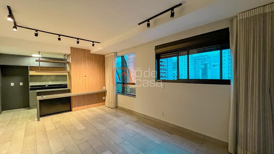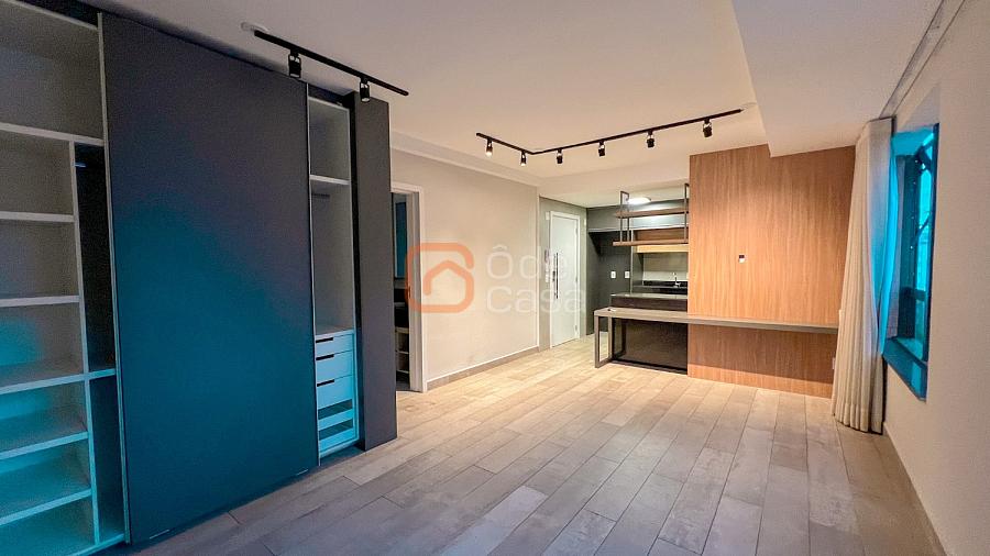 imóvel com espaço amplo, como sala, cozinha e quarto, e banheiro.